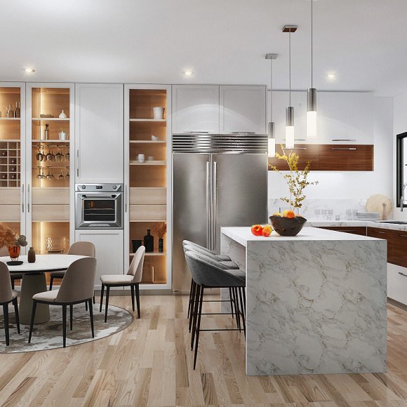 We guide homeowners through every step, starting with an in-depth design consultation. Using advanced CAD software and decades of carpentry expertise, we bring your vision to life before we even cut the first panel. You’ll see 3D renderings of your kitchen, select your preferred wood species and finishes, and work closely with our design team to refine every last detail.